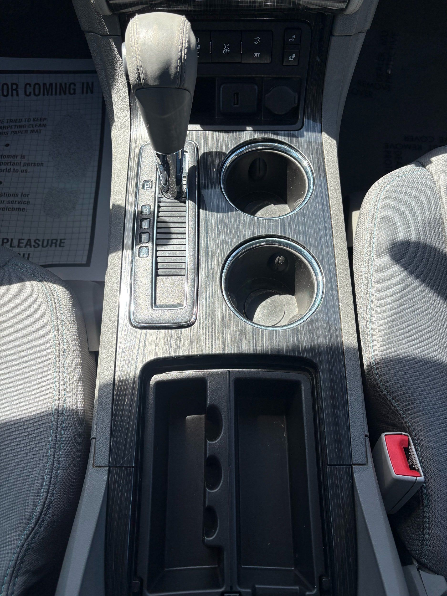 Floor console storage: Covered floor console storage