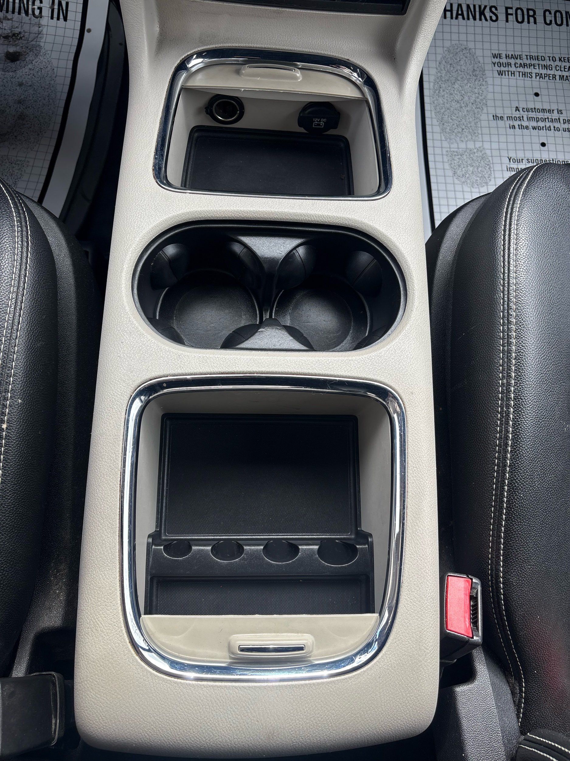 Floor console storage: Covered floor console storage
